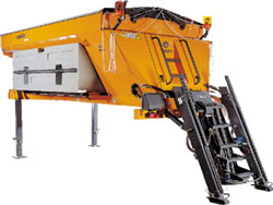 The leg system allows the spreader to be quickly off loaded (in 5 minutes) without the use of hoist equipment (even when fully loaded). This allows your truck to be available for snow/dump operations, is easy to remove install in the spring/fall for other hauling operations. Provides you the opportunity to substantially reduce your organization's overall equipment or rental costs and can better utilize your human resources.